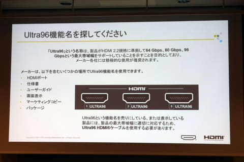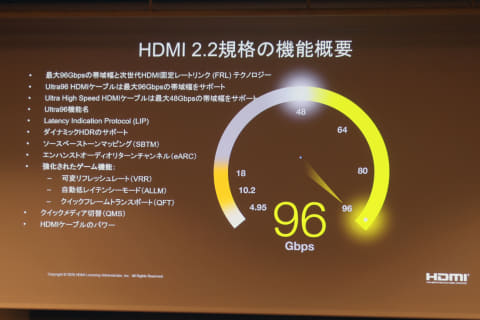 トバイアス:96Gbps伝送は、HDMIがサポートする数多くの機能の1つであり、どの機能をサポートするか否かはメーカーの判断、製品の仕様で異なる。48Gbpsのまま、HDMI 2.2のLIP機能だけを採用する製品も出てくるだろう。またその場合、HDMI 2.2対応と記載することも考えられる。