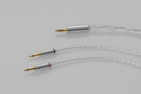 信号の伝送速度を追求したオリジナルのシルバーコートケーブルを付属。信号のロスを最小限に抑えることで音の消え際まで描き出す繊細な響きと、クリアな解像感を引き出すとしている。ケーブルのプラグは4.4mm。ケーブル長は2m。6.3mm標準への変換アダプターも同梱する。