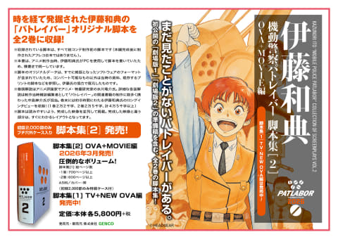機動警察パトレイバーシリーズの脚本を手掛けるHEADGEAR伊藤和典の脚本集第2弾が、3月に発売決定。価格は6,380円。発売に先駆けて、Amazon内 HEADGEAR公式ストアにて予約受付を開始している。