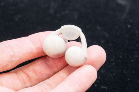 さまざまな人の耳形状の3Dデータを使った設計と装着試験を繰り返して、快適な装着感を実現したというイヤカフ型イヤフォン。