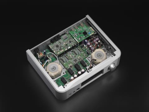 LRチャンネルの独立を徹底させるため、電源平滑回路を含む前段をデュアルモノで構成。NFB(ネガティブ・フィードバック)を最小限に抑え、躍動感ある音質を追求した。