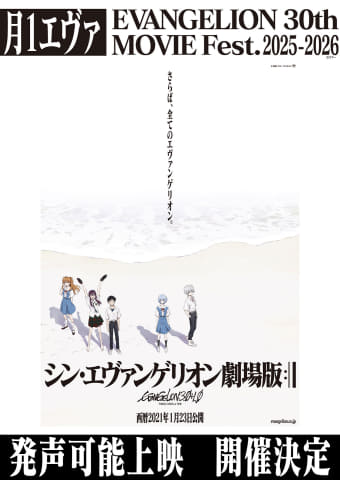シリーズ劇場版6作品を期間限定リバイバル上映する「月1 エヴァ EVANGELION 30th MOVIE Fest.2025-2026」(月1エヴァ)。2月13日から劇場上映される最終第6弾「シン・エヴァンゲリオン劇場版」にて、碇シンジ役・緒方恵美、葛城ミサト役・三石琴乃の冒頭コメントの上映が決定した。