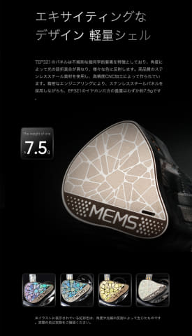 中でも注目は、世界初というダイレクトドライブMEMSユニット。従来のMEMSデバイスは、動作にバイアス電圧を供給する専用アンプを必要としていた。EP321では、新開発のダイレクトドライブMEMSユニットを採用することで、外部アンプを必要とせず、一般的な再生機器からの直接駆動が可能という。