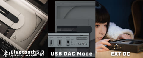 機能面ではBluetooth 5.3に対応し、送信コーデックはaptX Adaptive/aptX/SBCをサポート。USB DACモードは最大768kHz/32bit、DSD512まで対応する。ゲインはHigh/Lowの切り替え式。