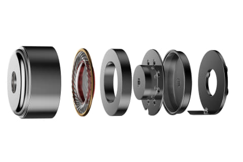 FT3に見られるような非対称の内外磁気回路設計を採用。有限要素法(FEM)シミュレーションを用いてボイスコイルの磁気ギャップ内の磁場密度を効果的に増加させた。感度は110dB/mWに達し、スマートフォンやドングルDACなどの携帯機器からでも鳴らしやすい。