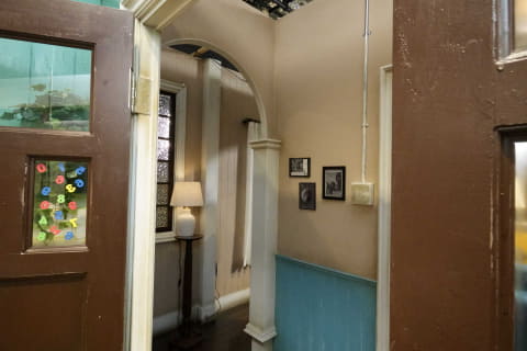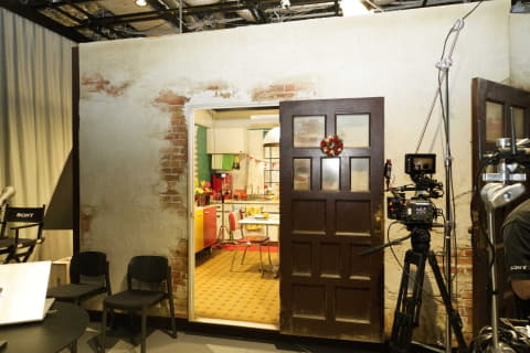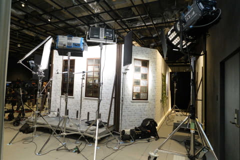 撮影スタジオには日本映画・テレビ美術監督協会の監修による撮影セットも展開。実際のドラマや映画撮影で用いられるようなクオリティのセットで、部屋の隅の汚れなどまで再現した生活感のある空間を作り出している。照明の調整による時間帯の変化も簡単に切り替えられるようになっており、機材の試用がより実際の現場に近い環境で行なえる。