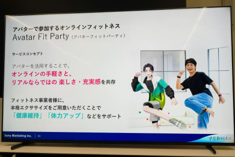 Avatar Fit Partyは、ソニーのXR技術「Extended Reality(拡張現実)」を活用したスマホ向けの新しいフィットネスサービスプラットフォーム。仮想キャラクターであるアバターを使い、「オンラインの手軽差と、双方向ならではの楽しさ、充実感を共存し、“続けること”を追求した」という。