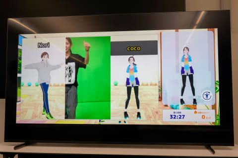 スマホをHDMIケーブルやミラーリング機能で自宅のテレビと繋げることで、仮想空間に人が集まるパーティ感を感じながら楽しめるほか、インストラクターの動きをしっかりと見られるようになる。