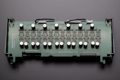 なお、AV 10ではこのHDAM-SA2を、各チャンネルに対して、独立した1枚の基板で構成し、その基板を19枚搭載している。AV 30では、コストを抑えるために、11.4chのHDAM-SA2回路を、左右チャンネルで分離、2枚の基板に配置して搭載。左右チャンネル間のクロストークを排除し、立体感のある空間表現力を実現している。