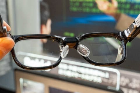 マグネットで着脱できるクリップオン式レンズが利用可能で、近視・乱視でも使用できるという。度入りレンズは提携しているメガネショップのものを利用できるとのことだが、レンズの厚みによってはスマートグラスと干渉してしまい使えないことがあるという。