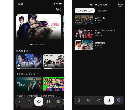 刷新されたアプリでは、テレビなどに表示されるFire TVのホーム画面を、モバイル端末のアプリ上でも見られるようになった。これにより、ユーザーの好みに合わせたおすすめや、視聴途中のコンテンツを一覧でブラウジングし、観たい作品をより簡単に見つけられる。ただし、Fire TVモバイルアプリで、動画自体を再生する事はできない。