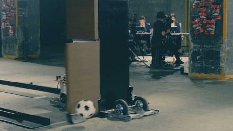 キーパーづくりも、フライパンを超高速で回転させたり、カメラでボールを検知して跳んだ方向に高速で横移動させたり。1カ月半の苦闘の末、両チームは、衝撃のマシンを誕生させる。どんな相手と戦うのか、わからない苦しさに悶絶しながら、夜会(試合本番)に挑む。
