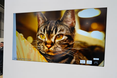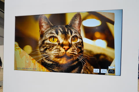 キヤノンブースで注目を集めていたのは、参考展示されていた新コンセプトのカメラの試作機。立方体に近い形状のボディと、内部に映像を映し出すスクリーンを内蔵しているのが特徴で、レンズから入った光を内部のミラーでスクリーンに映し出し、そのスクリーンを通った光をさらにミラーを通してセンサーに当てることで撮影するという仕組み。