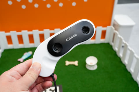 キヤノンのDual Pixel CMOSセンサーを活用し、カメラ1台で半立体的な映像を生成できるソリューションも展示。Dual Pixel CMOSセンサーの副次的な効果を活用したもので、2つのフォトダイオードが取り込んだ映像が右目、左目の役割を果たすことで、センサー1つで視差による距離感を図ることができるため、1枚の写真から立体の情報が取れるというもの。