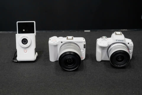 カメラの体験コーナーでは、やはり「EOS R6 Mark III」が注目されている。動画機では「EOS C50」と「EOS R50 V」の2機種が注目されているほか、新しく登場したR50 Vのホワイトカラーが「女性や若年層を狙ったカラーバリエーションだったが、男性からも好評」とのことだ。