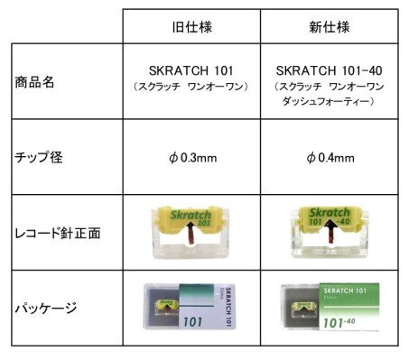 さらに、C-REVOブランドから販売中のN44モデルのDJ向けレコード針「SKRATCH 101」の仕様を変更し、「SKRATCH 101-40」としてリニューアルして発売。価格は7,700円で、レコード針2本セット。カートリッジ、ヘッドシェル、リード線は別売。出荷開始時期は4月2日以降順次。対応カートリッジはM44G・M44-7、J44D・J44A 7、J50、IMPACT、ALFA MODEL、GENRE BNDR MODEL、Clipper。