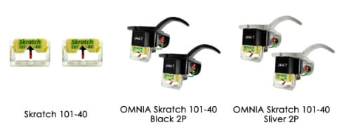 3月2日以降の注文分から、仕様変更した商品に切り替え出荷となる。さらに、カートリッジ+リード線+ヘッドシェルが付いたOMNIAバージョンもリニューアルと同時に発売する。こちらの価格は、「OMNIA Skratch 101-40 Black 2P」、「OMNIA Skratch 101-40 Silver 2P」各37,950円。ヘッドシェル付きカートリッジ2本セットとなる。