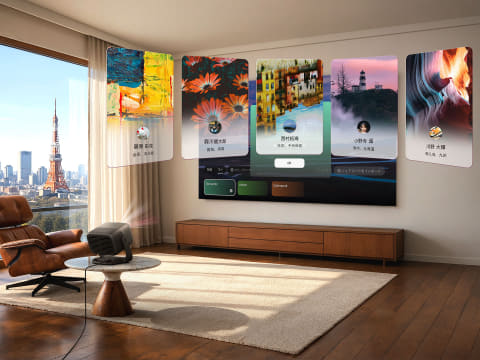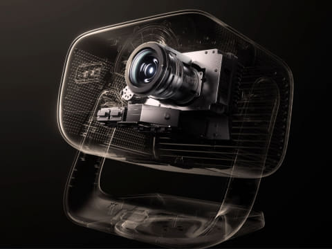 4K(3,840×2,160)のDLPプロジェクタ。最大の特徴は、AIが設置環境を判断し、最適な画面位置を自動で調整・記憶するAI自動画面最適化機能を備えたこと。これにより投影位置・障害物回避・フォーカス・台形補正が瞬時に自動調整され、置くだけで最適な大画面環境を構築できるという。