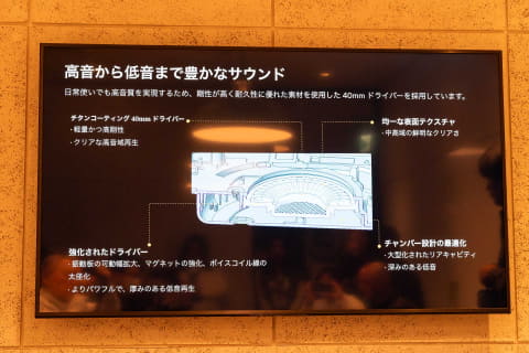 そのほか、振動板の可動幅拡大やマグネット強化、ボイスコイル線の太径化による低音再生の強化、チャンバー設計の最適化なども盛り込まれている。