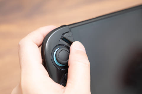 個人的に特に快適と感じたのは、(+)(-)ボタン。ケースを装着すると、押しにくくなりがちな部分だが、PITA TACTICAL JOY-CON GRIP CASEではこの部分が盛り上がった形状になっており、装着後の方がむしろ押しやすくなったと感じた。