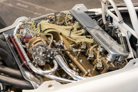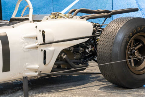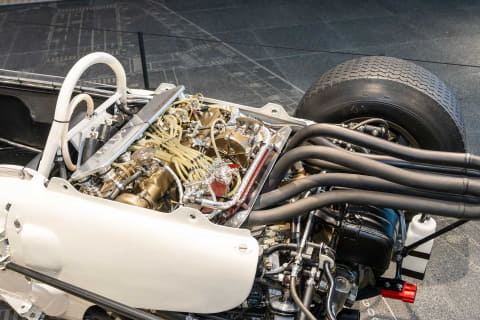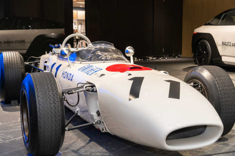 このRA272は1965年のF1に参戦したマシンで、ホンダの第1期F1活動ではRA271に続く2作目の自製マシン。1作目だったRA271と同じく1,500ccのV型12気筒エンジンを搭載しつつ、各部に改良が施されたことで戦闘力が向上。シーズン終盤には発展型も投入された結果、同年のF1最終戦メキシコGPでエースドライバーのリッチー・ギンサーが優勝。ホンダにF1初優勝をもたらした。