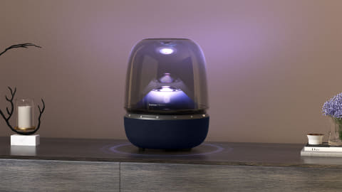 星雲をイメージした「ネビュラ」パターンを追加した、7つのライティングテーマを搭載し、音楽だけでなく、光でも心地よい雰囲気を演出。「Harman Kardon ONE」アプリから、明るさやライティングパターンなど細かく制御でき、鳥の声や水の音などテーマに合わせたアンビエントサウンドも再生できる。