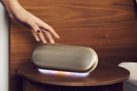 最大12時間の連続再生が可能なほか、IP67の防塵防水性能によりキッチンやお風呂などの水回りでも使用可能。Harman Kardon ONEアプリからオーディオやライティング設定も変えられる。2台のLuna 2をタッチし、瞬時にステレオペアリングを可能にする「AirTouch」機能も備えている。