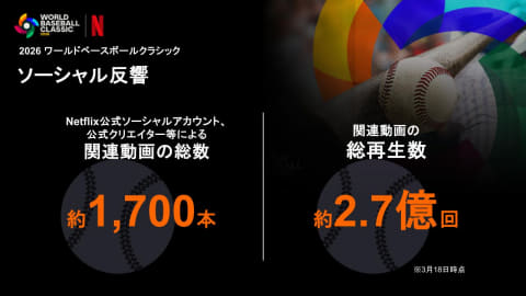 Netflixは25日、先日行なわれた「2026 WORLD BASEBALL CLASSIC(以下WBC)」について、Netflixでの視聴データを公開した。