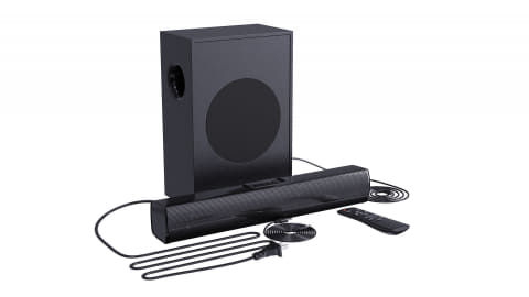 サウンドバーには10W×2のフルレンジスピーカーを搭載。20Wの独立サブウーファーを組み合わせ、計40W出力の2.1chシステムで、「ゲーム中にも深い没入感を楽しめる」としている。