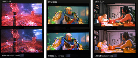 ゲームアートモードとして「ファンタジー」、「Sci-Fi(サイファイ)」、「リアリスティック」モードを搭載することで、複雑な手動調整を行なうことなく、製作者が意図した世界観を、BenQレコメンドのカラービジュアルで楽しめるという。