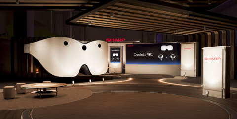 クラウドファンディングの開始に合わせ、VRChat上に仮想ショールーム「SHARP Xrostella World」もオープン。市販のPC接続型VRグラスのほか、パソコンからも利用できる。