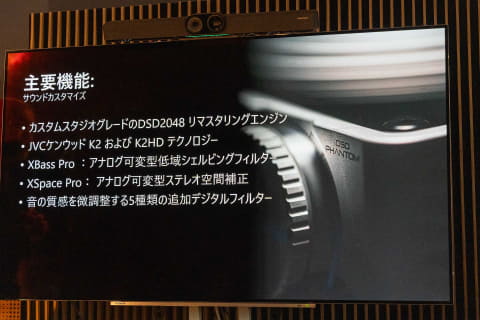「サウンド面では、DSD 2048に対応したカスタムスタジオグレードのリマスタリングエンジンを搭載しています。我々を除いて、ここまでの水準にたどり着いているメーカーはないと自負しています。JVCケンウッドとのパートナシップもそのひとつで、K2/K2 HDテクノロジーを搭載しています」
