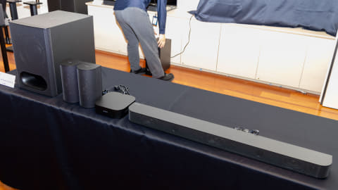親機がサブウーファになっており、テレビとサブウーファをHDMIで接続して使用。サブウーファとバースピーカー、後方に設置するアンプボックスと2つのリアスピーカーはそれぞれ有線で接続。サブウーファとアンプボックス間の信号は、無線で伝送される仕組みになっている。