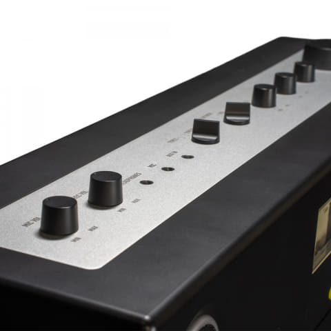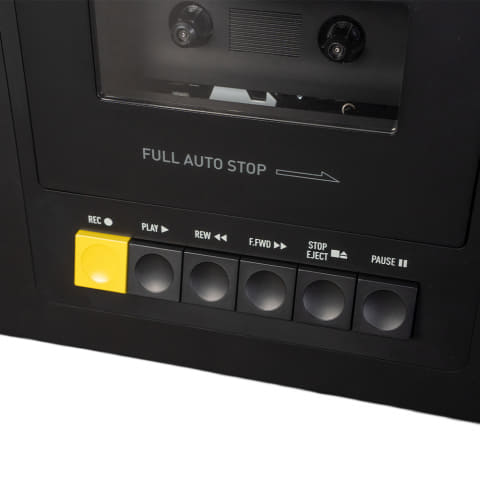 左右独立のウーファーとツイーターを搭載し、広がりのあるステレオサウンドを再生可能。合計104Wの出力を持つ。カセットプレーヤー/レコーダーも搭載。スピード制御機能を備え、モーターはユーザーによる調整も可能。