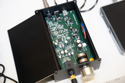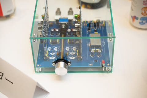 オンキヨーは、同社のアンプ技術を投入した共立電子の「ヘッドフォンアンプキット」を紹介。超低歪のヘッドフォンアンプを手作りできる、すべてのパーツが揃ったフルキット。オンキヨー前身の創業以来、Onkyoブランドのオーディオ製品・スピーカー開発で培ってきた「音」に関する技術のうち、アンプ技術を商品化したもので、同社が保有する特許回路が盛り込まれているという。