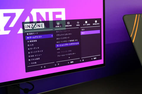 また、物理的に不可能なものを除いた全機能が併用可能。例えば、24.5インチモードでモーションブラー低減を使うといったことも行なえる。