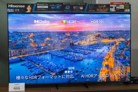 ハイセンスジャパンは、4K液晶テレビの新製品として、量子ドットとミニLEDバックライト技術を搭載した「U7Sシリーズ」を4月24日より発売する。55型から100型まで、5サイズをラインナップ。価格はオープンで、市場想定価格は17.6万円前後から。