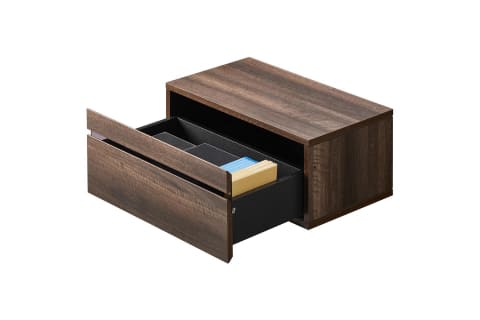 引き出しタイプとフラップ扉タイプを、収納するアイテムや用途に応じて組み合わせることで、機能的で無駄のない収納空間を実現できる。