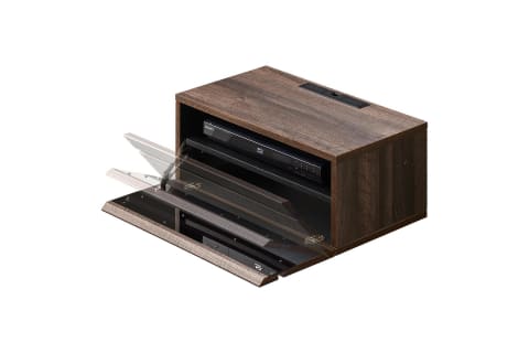 朝日木材加工は、壁掛けテレビと組み合わせるフローティングボードを5月上旬に発売する。価格はオープン。ラインナップと市場想定価格は、引き出しタイプの「SP-FLT600DR-DB」が35,000円前後(税別)、フラップ扉タイプの「SP-FLT600FD-DB」が40,000円前後(同)、床置き用のベースユニット「SP-FLT600BS-BK」が7,000円前後(同)。壁取り付け時の工事費は含まれない。