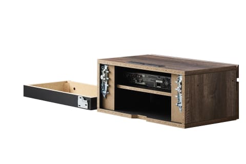 オプションのベースユニットと組み合わせることで、床置きタイプのローボードとしても使用可能。ライフスタイルや設置環境の変化にも対応する。