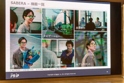 なお、カメラとスピーカーは非搭載。jig.jpの川股将代表取締役社長CEOは、カメラを搭載しなかった理由について「カメラがあることで心理的に(SABERA スマート眼鏡を)かけづらい場面が生まれることを防ぎ、できるだけ自然に、長くかけ続けていただきたいと考えているため」と説明した。