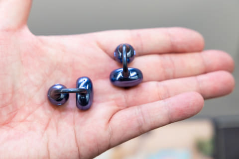TVS REGZAは、耳をふさがずに音楽が楽しめるイヤーカフ型の完全ワイヤレスイヤフォン「RB-A1S」を5月22日より発売する。インディゴ(ID)、アイボリー(IV)、ローズゴールド(RG)の3色を用意。価格はオープンで、市場想定価格は26,400円前後。