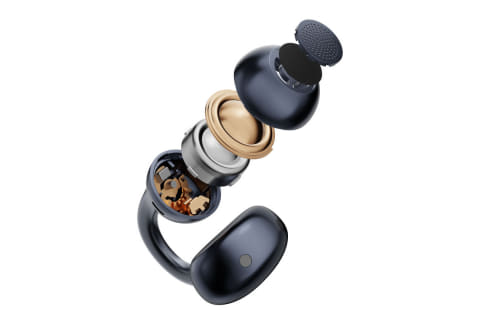 イヤフォンは、耳道をふさがないオープンタイプを採用。耳への負担を抑えつつ、周囲の音も聞くことができる設計とした。オフィスや在宅勤務、ジムや散歩、料理や掃除中など、あらゆるシーンで使用できる。