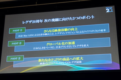 「2006年のレグザブランド誕生から20年という節目を迎えられたことは非常に感慨深い」としながらも、「あくまで20周年は次の飛躍に向けたスタートライン」とし、今後強化して行く3つの施策を明らかにした。
