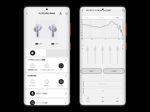専用アプリと連携することで、内蔵DSPを使ったパラメトリックEQの細かな設定が可能。フィルタータイプ、周波数ポイント、ゲイン、Q値などを自在に調整できる。ターゲットカーブを選ぶだけでワンタッチで理想的な音質チューニングができる自動EQ機能も搭載する。