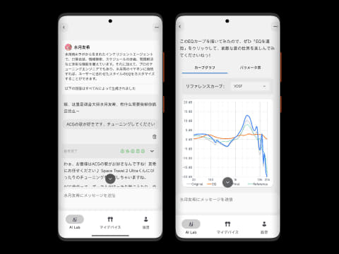 アプリには、自作したEQ設定を他のユーザーと共有する機能や、膨大な音響知識を学習させたAI「AI 水月友希 Beta0.1」も搭載されている。
