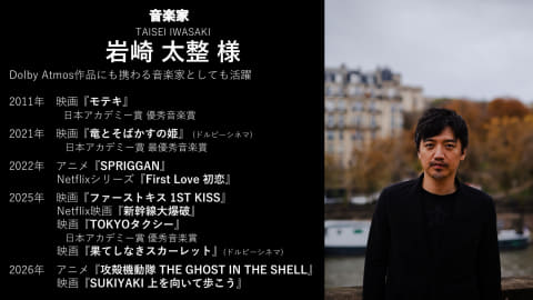 音楽家の岩崎氏も「音の“空間”を作り出せるのがドルビーアトモスの魅力。映画の中に入ったような、まるでライブ会場や運転席で音を聴いているような、立体的な表現が可能になった。映画を体験的なものにしてくれる」と魅力を解説。