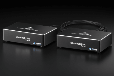 トップウイングは、TOP WINGブランドのUSBアイソレーター「Silent USB Link」を5月20日に発売する。USBオーディオのために設計された二筐体構成の製品で、光絶縁アイソレーター、MEMSクロック搭載リクロッカー、長距離対応USBエクステンダーという3つの機能を統合している。価格はオープンで、市場想定価格は77,000円前後。