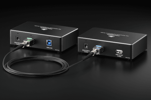 入力はUSB3.0 Bポート、出力はUSB3.0 Aポートを装備。ユニット間通信はSFPポートを使用する。なお、物理コネクタはUSB3.0形状だが、動作はUSB2.0規格となる。伝送速度は典型値100Mbps。USB-DAC用途に必要十分な帯域へ最適化することで、安定性と低ノイズ設計を優先したという。DSD512までの再生を確認済み。