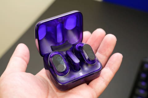 INZONE Budsの新色・グラスパープルは、INZONEのブランドカラーを採り入れたモデル。レトロブームに合わせ、内部の見えるクリア素材を採用し、高価格帯の品位を担保した透明デザインに仕上げたという。基本スペックは従来モデルと同様。